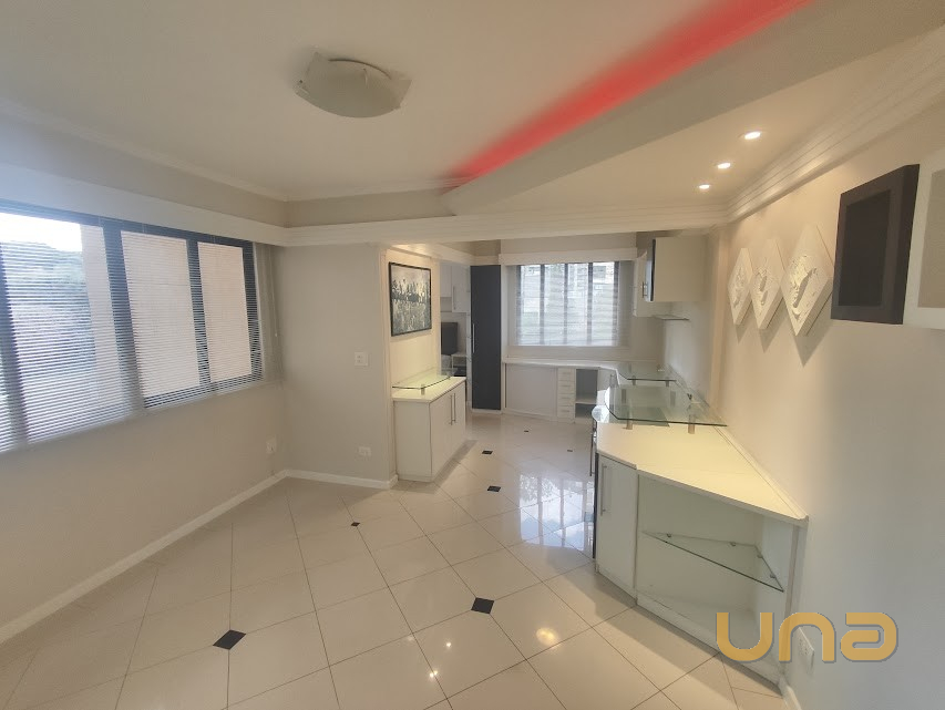 - SALA: Porta com fechadura eletrônica, Rack, bancada em vidro para estudo, persianas, armários, iluminação decorativa