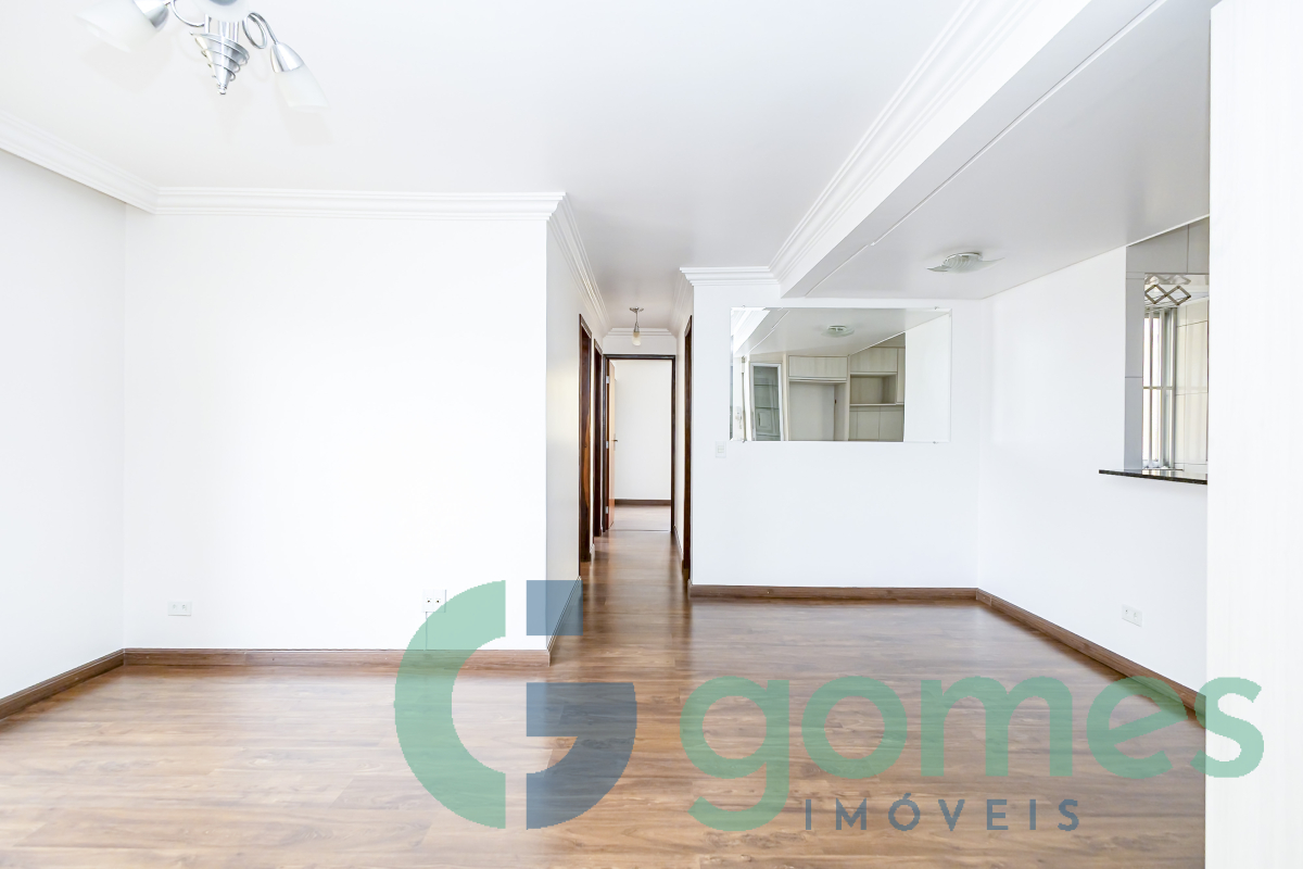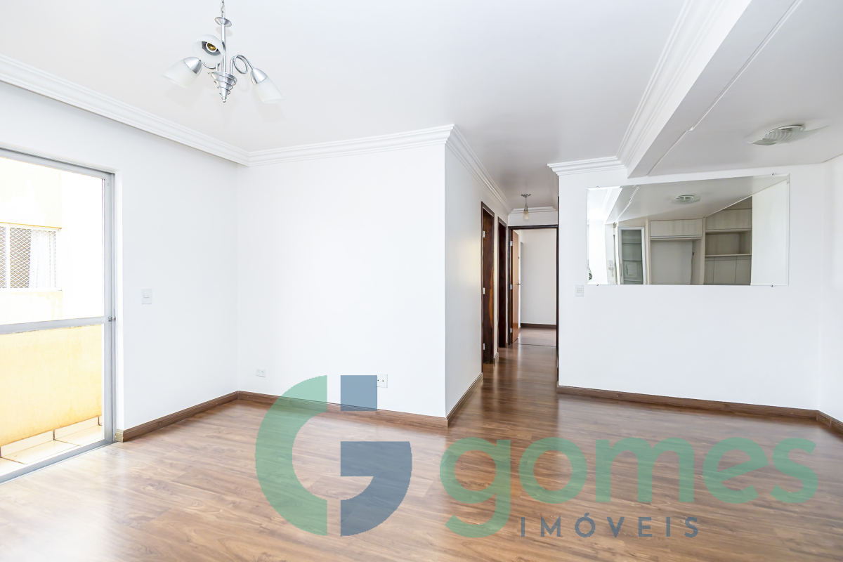 03 quartos sendo 01 suíte (com closet), ampla sala para 02 ambientes com sacada e sanca de gesso, cozinha estilo americana com armários e tampo de granito, área de serviço, banheiro social e da suíte com box de vidro, armários e espelho.