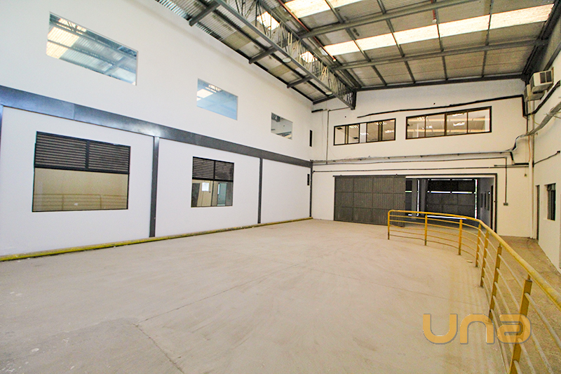 Barracão amplo, com docas na expedição/embarque e desembarque de cargas, 3 grandes portas basculantes, luminárias e guarita.
