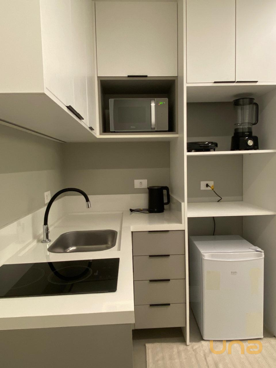 - Cozinha conjugada com armários planejados, pia com tampo em granito, louças, talheres em geral, panelas adequadas para fogão por indução.