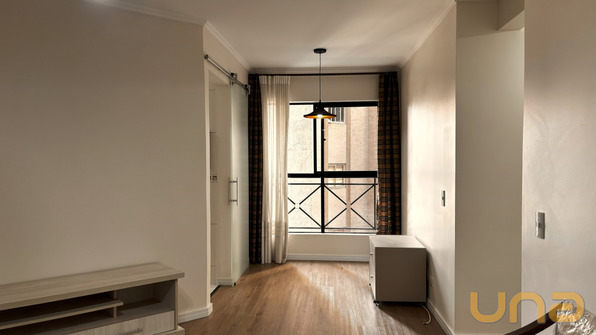 Piso de Madeira laminada na Sala e nos DormitóriosPiso de Cerâmica na Cozinha, na Lavanderia e no BanheiroCozinha com armários, fogão e exaustorCozinha e Lavanderia separadas1 Dormitório com sacadaAquecedor de Passagem Rinnai instalado na LavanderiaApartamento impecável, com pintura novaPrédio com 3 ElevadoresVaga de garagem livre, coberta e demarcada