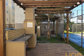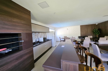 Possui 2 dormitórios com armários, sala para dois ambientes com sofa e rack, cozinha com armários planejados integrada com a lavanderia e banheiro social com armários e box, uma vaga de garagem (descoberta).