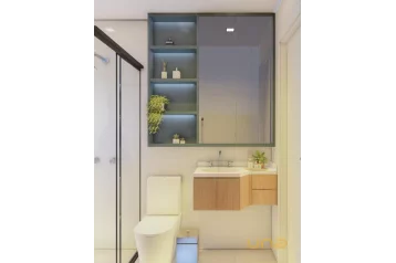 Banheiro com box em vidro temperado;