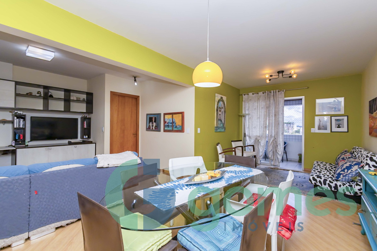 03 quartos (sendo 01 suíte) ficando armários embutidos nos quartos, banheiro da suíte com armários e box de vidro e hidromassagem, sala para 03 ambientes com rack com sacada, banheiro social com box de vidro e armários, cozinha com armários com tampo de granito, área de serviço, dependência completa de empregada com armários.