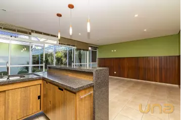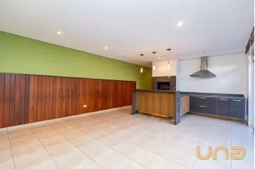 No térreo, os ambientes são espaços, integrados e funcionais: lavabo, quarto e banheiro de serviço, e uma área social voltada para o lazer, onde a churrasqueira e a jacuzzi criam o cenário perfeito para receber com estilo. O porcelanato nos ambientes confere um toque contemporâneo e de fácil manutenção.