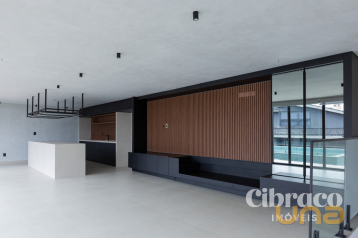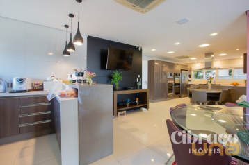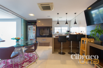 Espaço gourmet integrado a sala de tv.