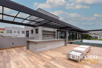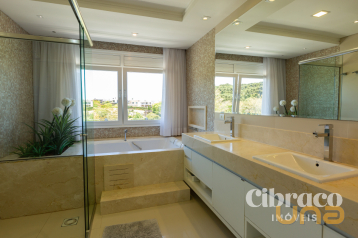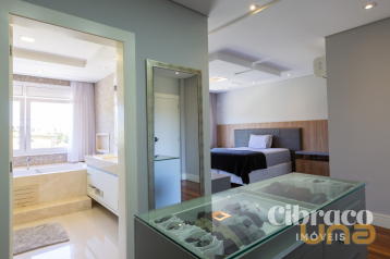 Casa ampla, com 547,84m² de área privativa com 4 quartos, sendo 1 suíte master com closet, sala de descanso e varanda, 1 suíte júnior com closet, e demi-suíte que atende os outros dois quartos e ainda, uma sala de chá ao estilo japonês.