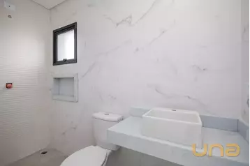 No primeiro pavimento temos 03 quartos sendo 01 suíte com sacada. Os quartos são todos com sanca de gesso, ficando armário em 01 quarto. Banheiro social e da suíte com box de vidro e espelho.