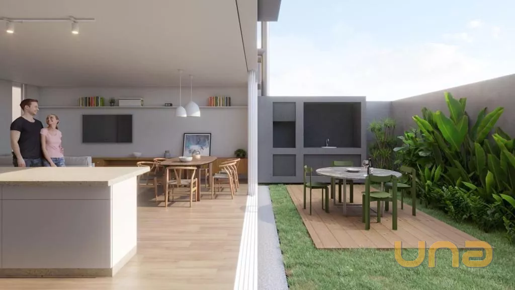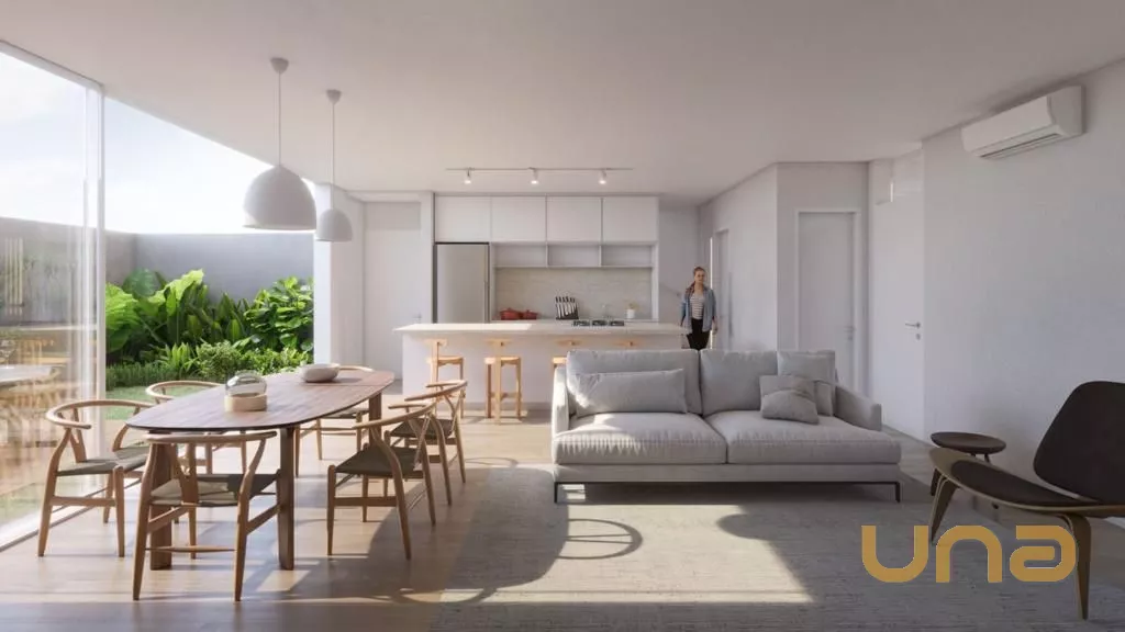 Sala de estar e sala de jantar com acesso ao jardim